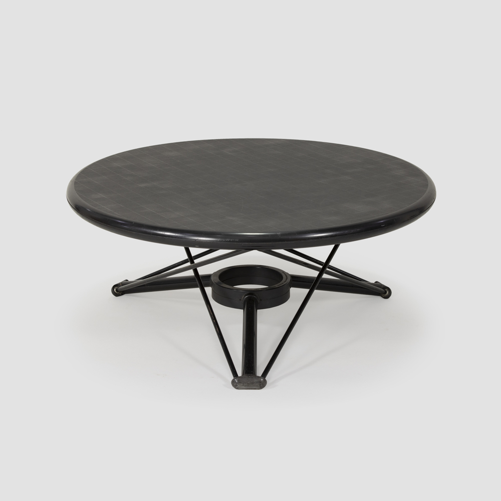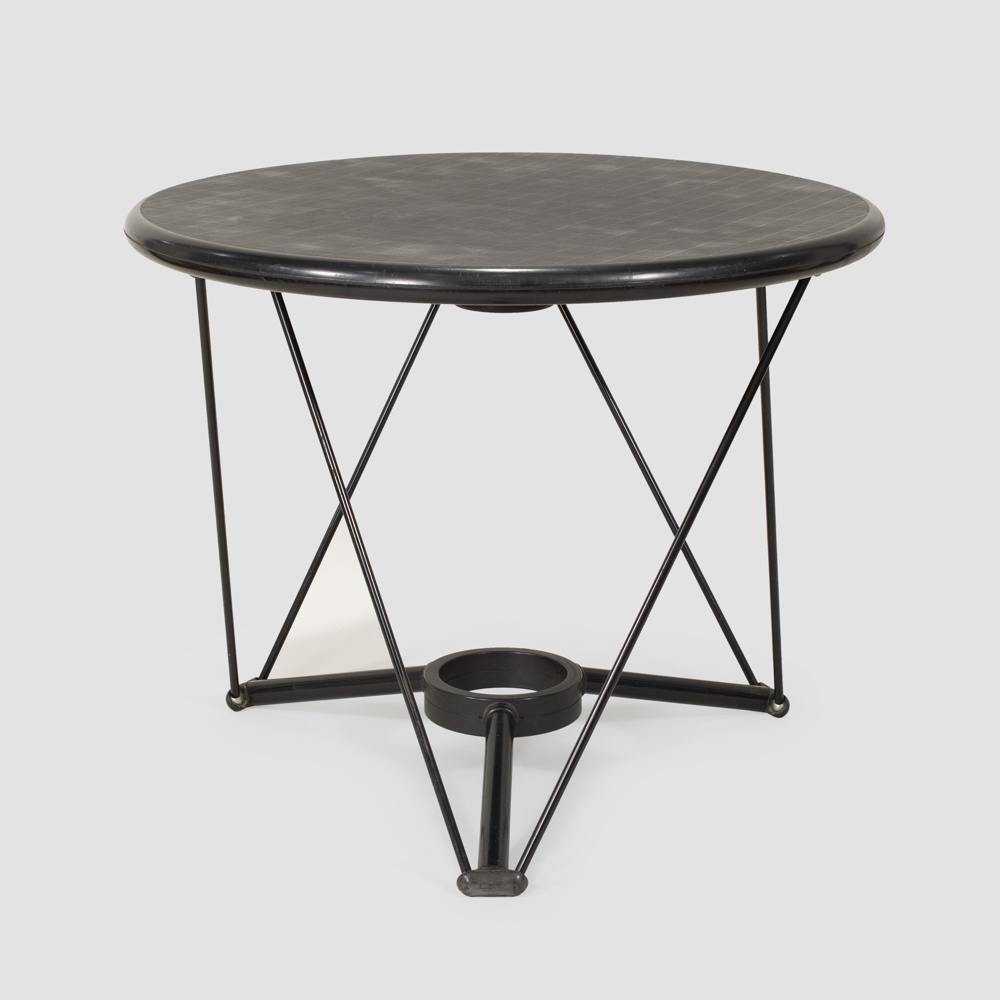 tavolo mod. Lem regolabile in altezza in metallo verniciato e plastica, firmato.