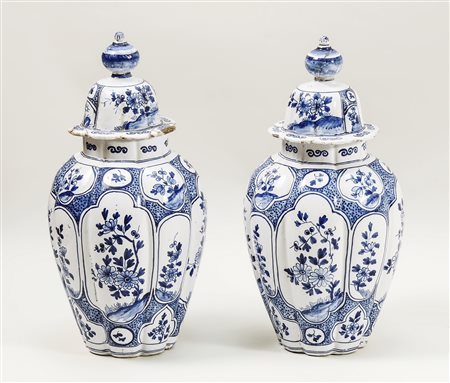 COPPIA DI VASI IN MAIOLICA - PAIR OF MAJOLICA JARS Delft, prima metà del XX...