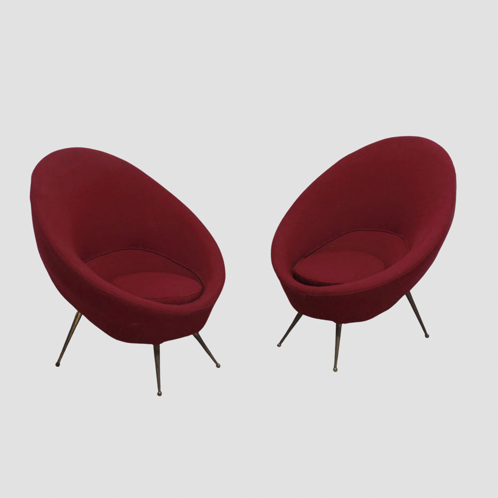 coppia di poltrone in ottone e tessuto imbottito, lievi usure