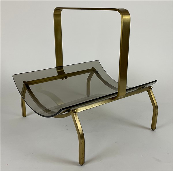 Portariviste con struttura in ottone, ripiano in cristallo fumè. Italia, anni '