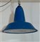 Lampada a sospensione alogena. Italia, secolo XX. Metallo verniciato azzurro. Recante etichetta della produzione. (h cm 40; d cm 45) (lievi difetti)