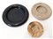 Lotto di tre posacenere in pietra dura, una con etichetta adesiva UP&UP. (d max cm 24)