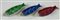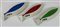 Lotto di tre contenitori a forma di pesce in ceramica smaltata rosso, verde e b