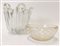 Vaso costolato in vetro soffiato incolore fortemente iridato, unito ad una ciotola in vetro soffiato a bolle con applicazione di foglia d'oro eseguito da Mazzega. Seconda metà secolo XX. (difetti)