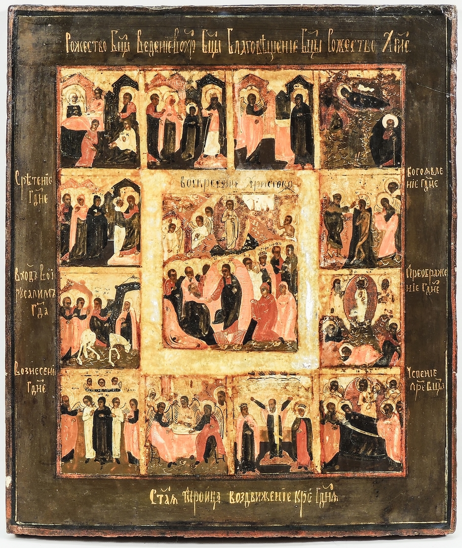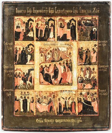 ICONA - ICON XX SECOLO - 20TH CENTURY olio su tavola - oil on panel raffigurante scene della vita di Cristo, difetti cm 40x34