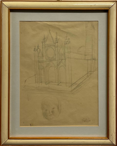 Franco Gentilini "Cattedrale di Orvieto" 1970 matita su carta cm 32x24 firmata e