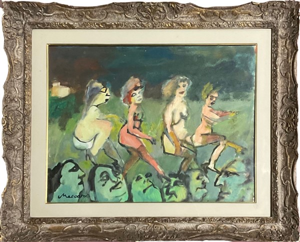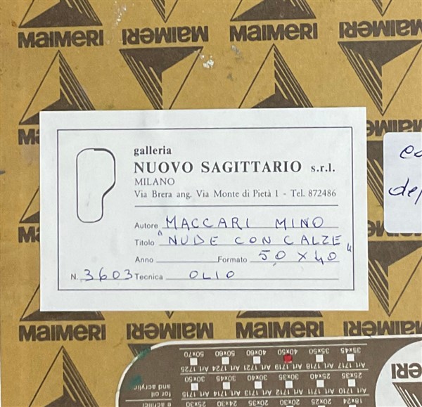 Mino Maccari "Nude con calze" olio su cartone telato cm 40x50 firmato in basso
