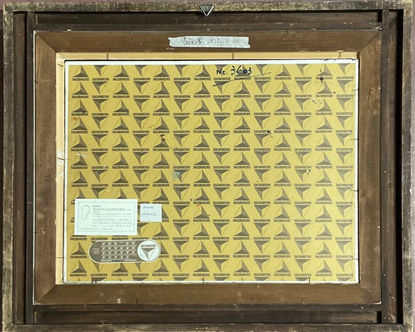 Opera accompagnata da certificato di autenticità su fotografia firmato dall'artista con timbro della Galleria Nuovo Sagittario, Milano