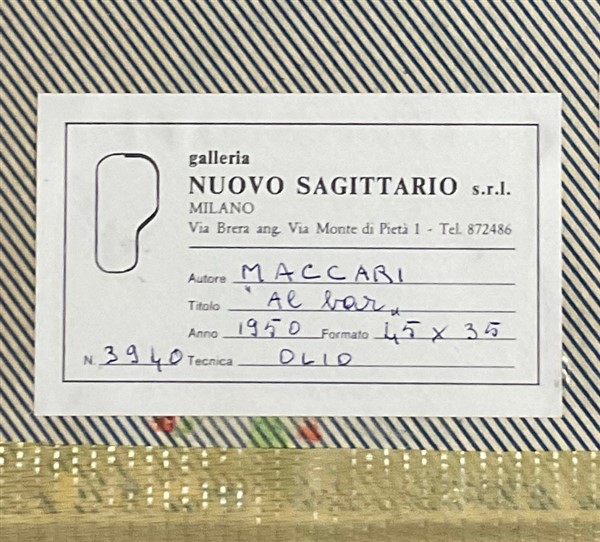 Galleria A. Consorti, Roma (timbro al retro); Galleria d'Arte Campaiola (timbro al retro); Galleria Nuovo Sagittario, Milano (etichetta al retro); collezione privata, Milano