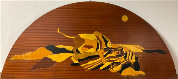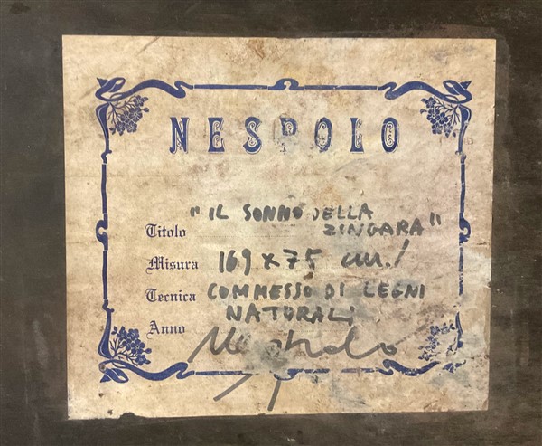 UGO NESPOLO "Il sonno della zingara" testata di letto ad Intarsi di legni cm 75