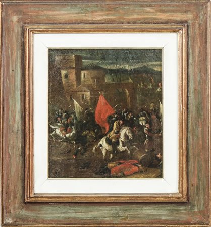 SCUOLA NAPOLETANA DEL XVIII SECOLO - NEAPOLITAN SCHOOL OF 18TH CENTURY Scena di battaglia - Battle Scene olio su tela - oil on canvas, in cornice cm 35x31