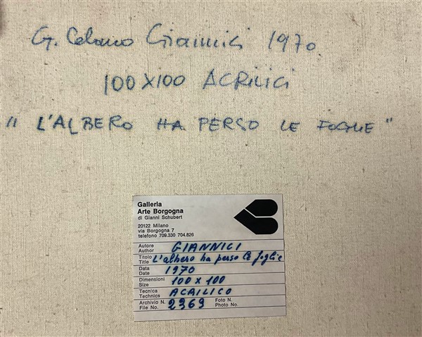 Gianni Celano Giannici "L'albero ha perso le foglie" 1970 acrilico su tela cm 10