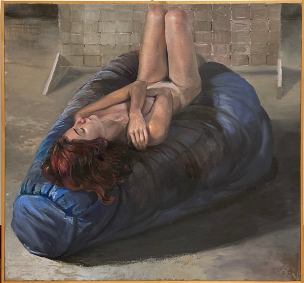 PAUL BEEL "Blu Bag" 2003 acrilico e chiodi su tela cm 100x100 firmato e datato a