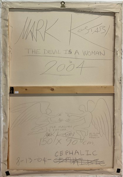 Kostabi Mark "The Devil is a woman" 2004 acrilico su tela cm 150x90 firmato e da