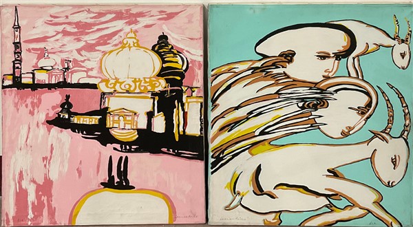 Lot 2472 | Remo Brindisi Due serigrafie su tela - prove d'artista di soggetto diverso cm 69