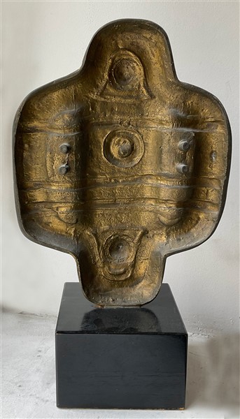 Aimone Modonesi "Composizione astratta" scultura in metallo dorato su base in l