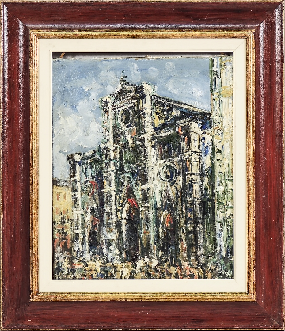 EMANUELE CAPPELLO Duomo di Firenze - Florence View olio su tela - oil oncanvas, firmato, in cornice cm 50x40 Al verso reca timbro Galleria d'Arte Cavour, Firenze - With stamp on reverse