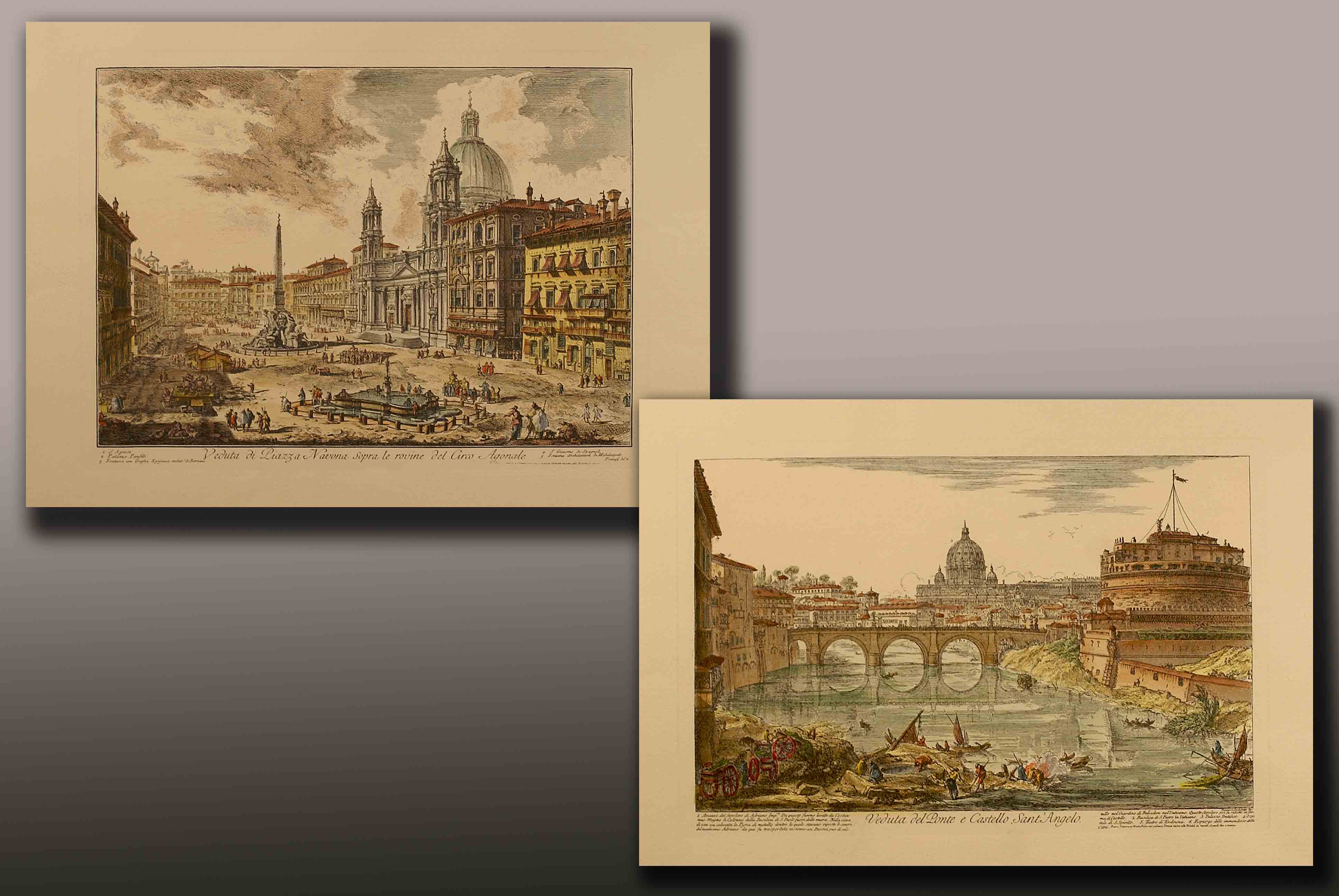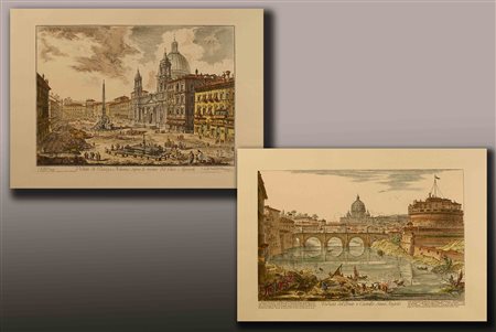 Coppia di stampe raffiguranti vedute di Roma entro cornici in legno, cm. 70x40.