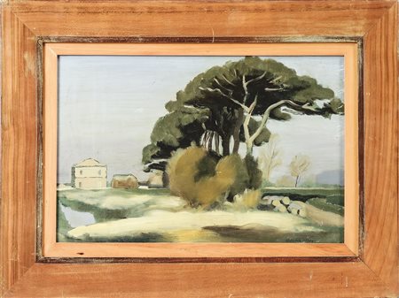 RUGGERO ALFREDO MICHAHELLES (1898-1976) Paesaggio - Landscape olio su tavoletta - oil on panel, firmato, in cornice, difetti cm 27x40