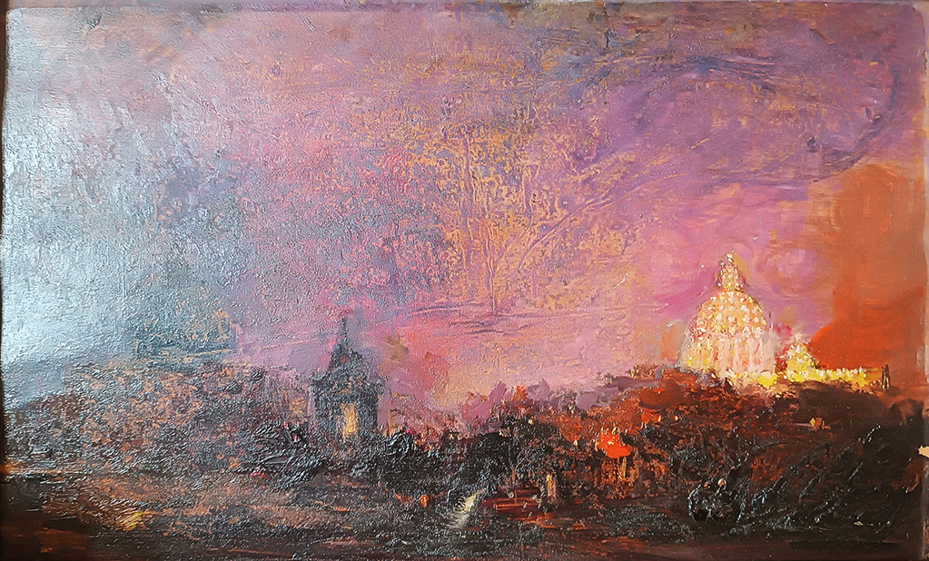 Giuseppe Pastina, Olio su cartone, 35x50cm, Illuminazione di Piazza San Pietro nella notte del Giubileo del 1925