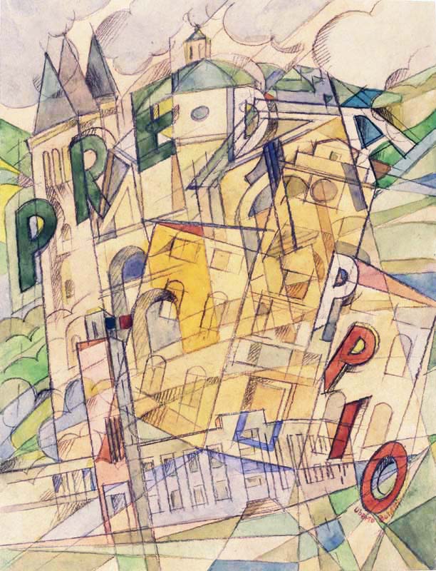Uberto Bonetti, Aeropittura-Tecnica mista su carta, 29,5x22,5cm, Predappio