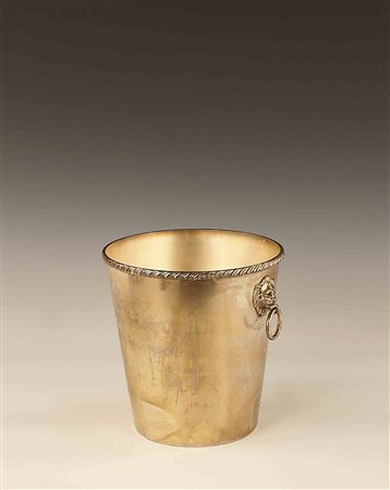 Secchiello portabottiglia in metallo argentato, h. cm. 20.
