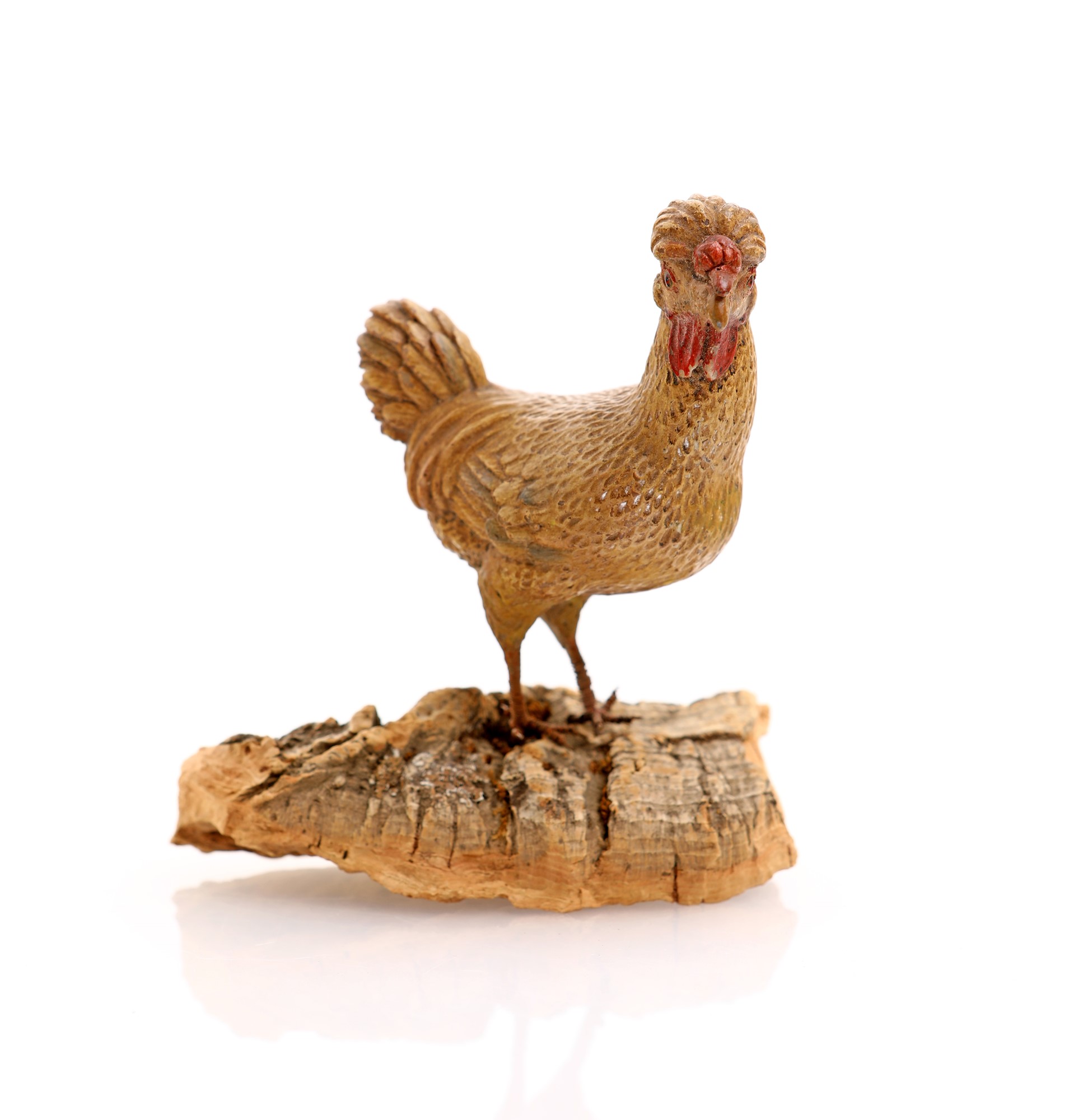 Gallina padovana occhi di vetro, piumaggio beige terracotta policroma cm 9x7,5x3
