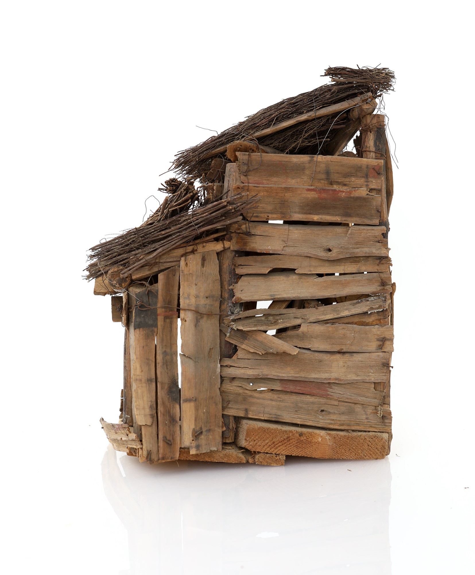 Stalla in legno con tetto di ramoscelli cm 37x25x23