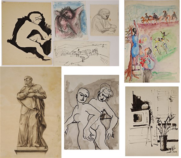 Lotto composto da numerosi disegni e litografie del secolo XX, di autori, sogge
