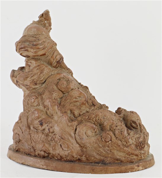 Ignoto. Figura orientale in lotta con drago, scultura in terracotta (h. cm 21) (difetti)