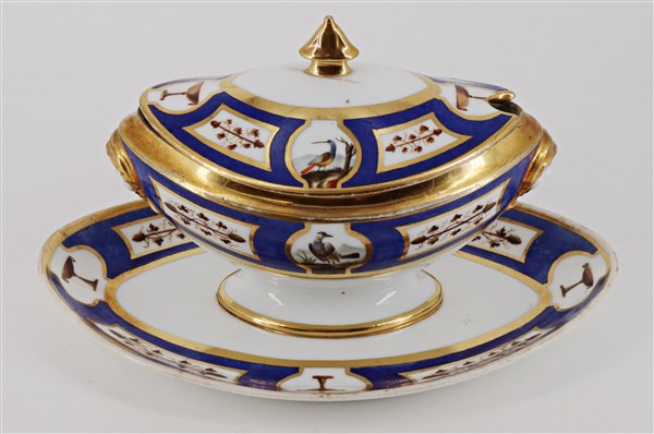 Manifattura Halley, Parigi, inizio secolo XIX. Salsiera con coperchio in porcel