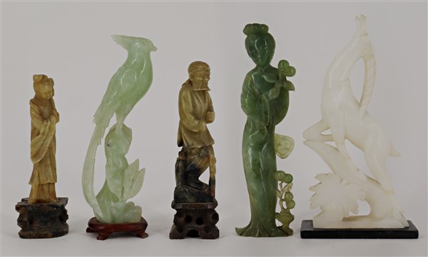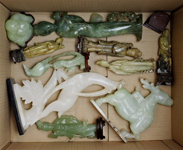 Cartone contenente diverse sculturine in pietre dure Cina, epoche diverse (h m