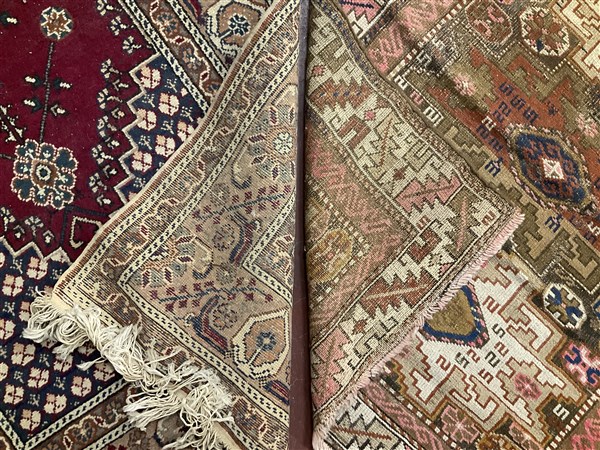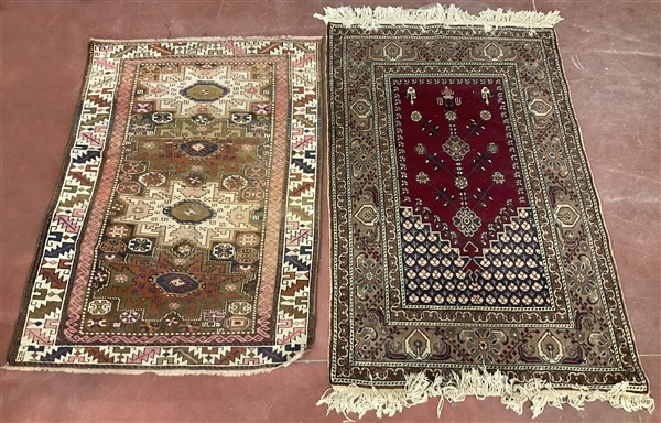 Lotto di due tappeti : uno Shirwan Lesghi, Caucaso, secolo XX; l'altro preghiera Anatolia, secolo XX; misure differenti (difetti)