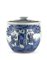 Cache pot con coperchio in porcellna bianca e blu decorata con figure sotto albero