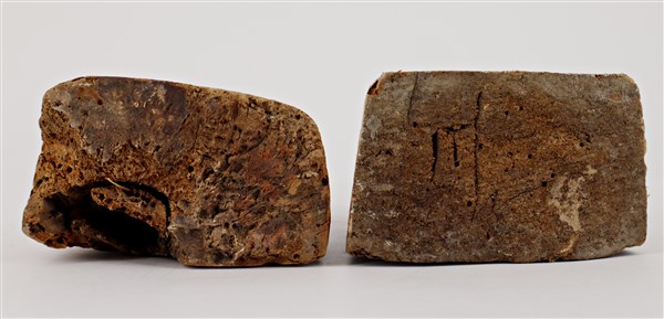 Due figure di dignitari in legno intagliato e dipinto in stile Ming