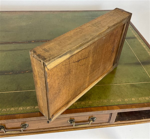 Scrittoio da centro in mogano a tre cassetti nella fascia su ambo i lati, gambe
