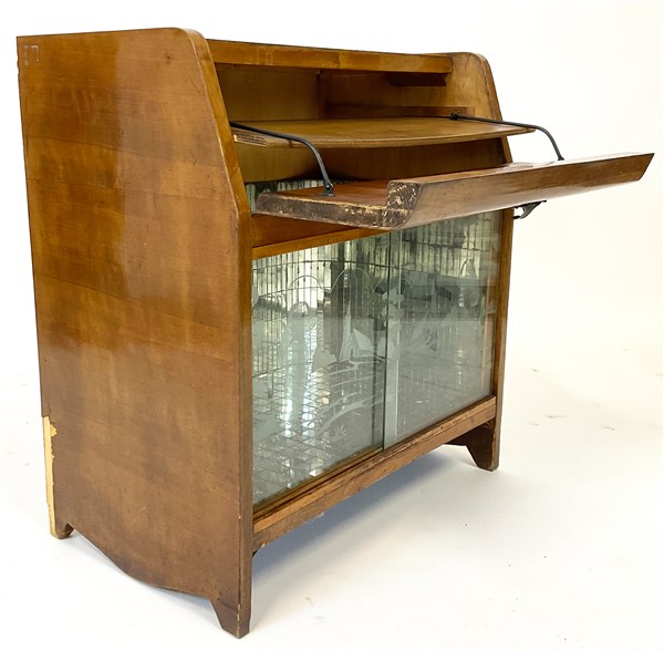 Lotto composto da un tavolo da salotto in legni vari, un mobile bar con vetrina