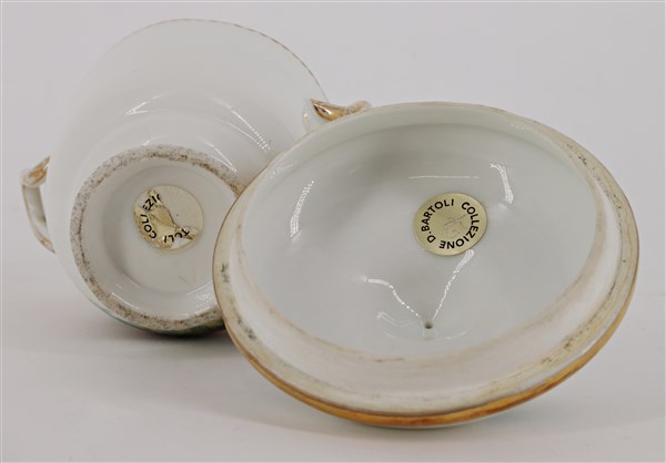 Manifattura del secolo XIX. Cremiera biansata con coperchio in porcellana decor