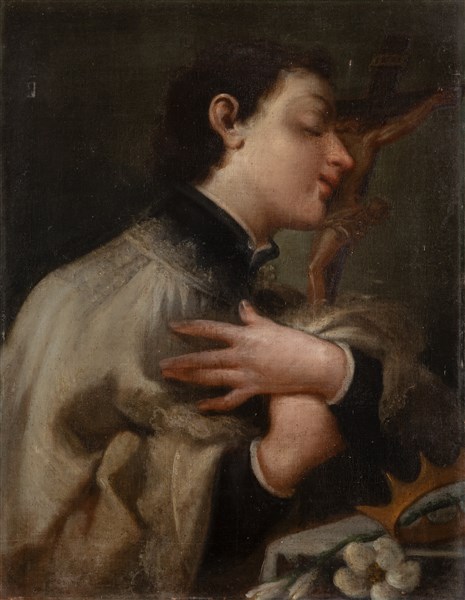Scuola del secolo XVIII "San Luigi dei Francesi" olio su tela (cm 55x42) in co