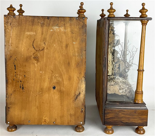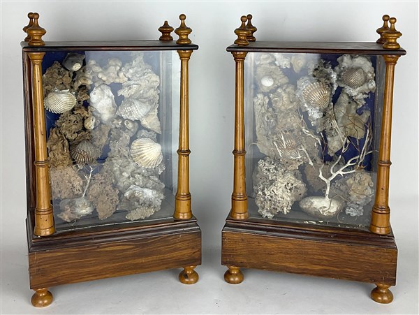Coppia di teche in legno contenenti composizioni con conchiglie (cm 24x39x13) (