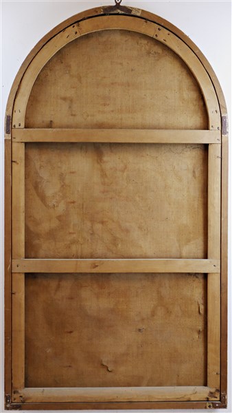 Scuola del secolo XVIII "Madonna con Bambino e Santi" olio su tela centinata (