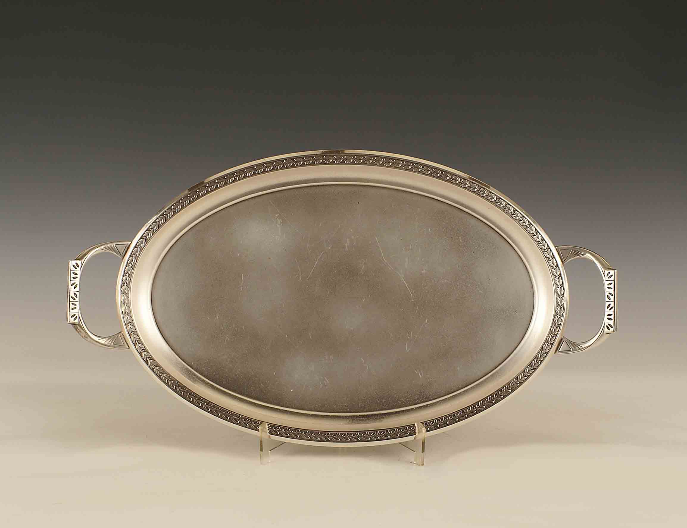 Vassoio ovale in metallo a due manici, cm. 45x25.