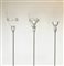 Tre lampade a stelo in metallo con base in vetro, diffusori in vetro e plastica