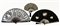 Arte del secolo XIX. Lotto di tre ventagli con stecche in tartaruga intagliata e dorata con pagine in pizzo e tessuto ricamato. Uno intervallato da cartelle dipinte raffiguranti amorini firmato Henriette. Uno con piccolo orologio a numeri arabi e romani nella stecca in tartaruga con pagina decorata da figura femminile tra fiori. Uno con pailettes e decori stilizzati (difetti)