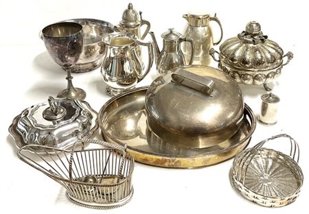 Due cartoni contenenti oggetti in metallo argentato di diverso uso e manifattura(difetti)