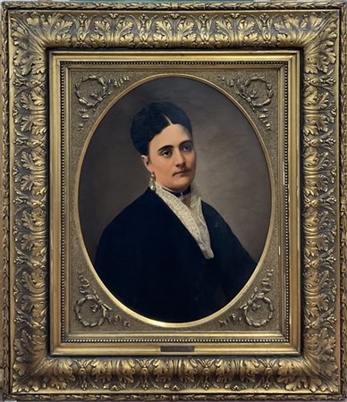 Annibale Gatti (Attribuito) "Ritratto di gentildonna" 1880 olio su tela ovale (