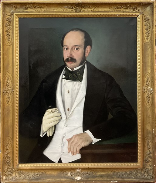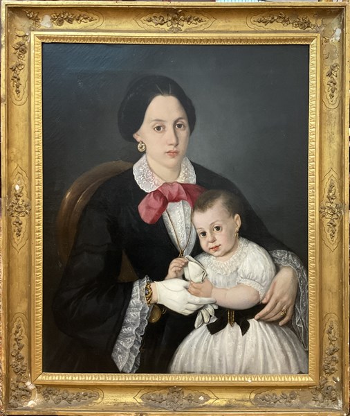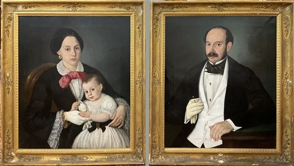RAFFAELE GERMANI Coppia di ritratti familiari olio su tela (cm 77x60) Di cui uno