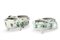 Manifattura Cerreto Sannita, secolo XVIII. Lotto composto da due porta ampolle ad un'ansa in maiolica con decoro similare in monocromo verde a motivo floreale (L. max cm 21) (lievi difetti)