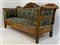 Divano a ventaglio con schienale sormontato da cimasa intagliata e traforata, a