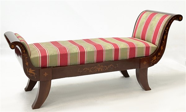Panchetto da centro impiallacciato in mogano e intarsiato in legno chiaro (cm 174x80x53) (lievi difetti)